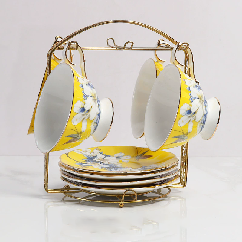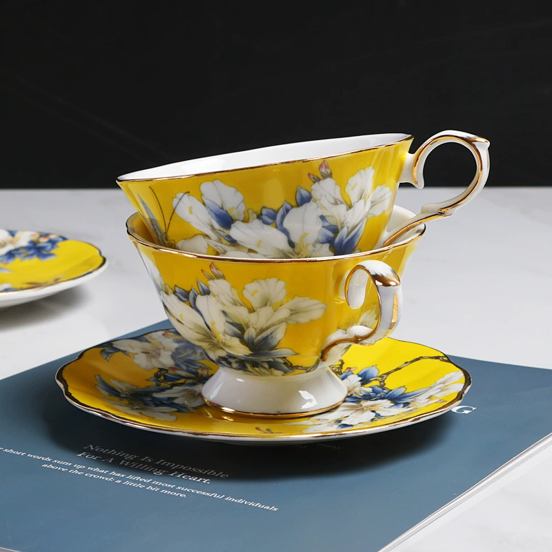 European Palace Style Royal Bone Porcelain Coffee Cup and Plate Set