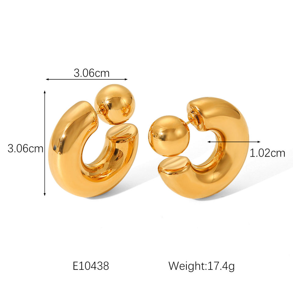 European Popular Stainless Steel 18K PVD Plated Chunky High Polished CC Shape Unusual Detachable Ball Plug Women Hoop Earrings