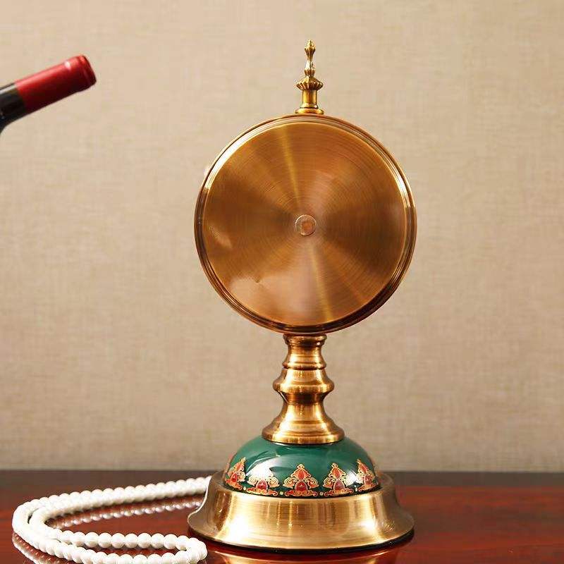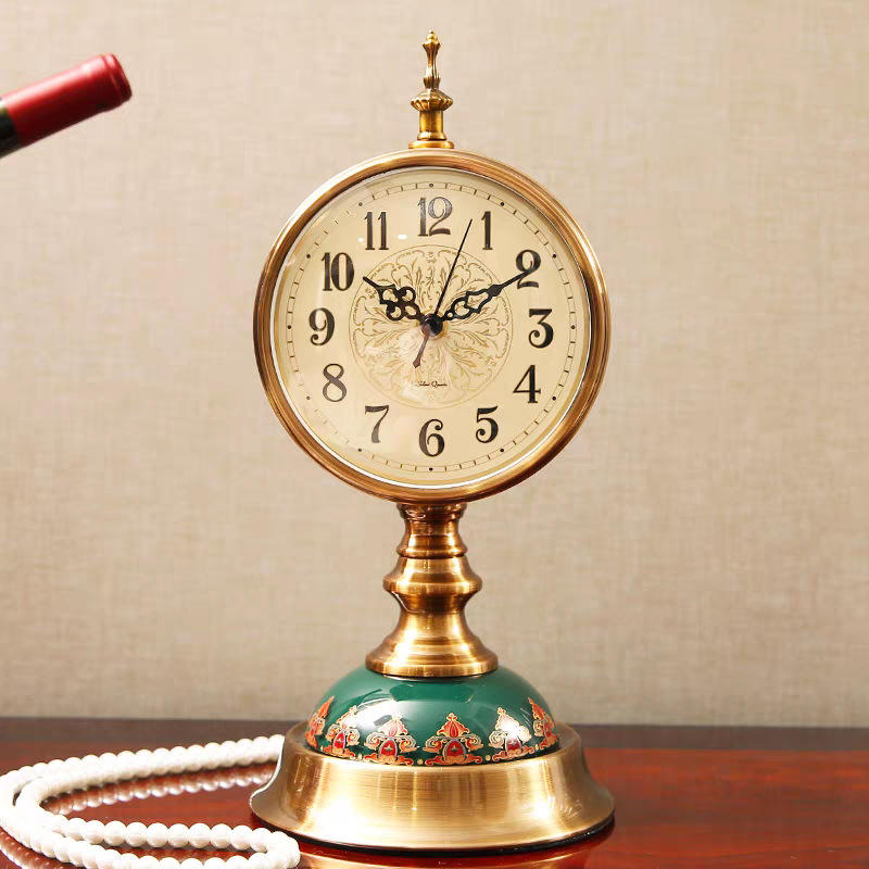 European Retro Style Desk Clock Circular Silent Table Clock For Living Room Decorative Standing Clock With Brass Base And Green
