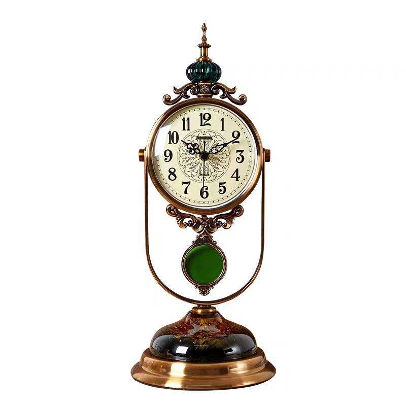 European Retro Table Clock Circular Battery Operated Hourly Chiming Living Room Bedroom Desktop Decor