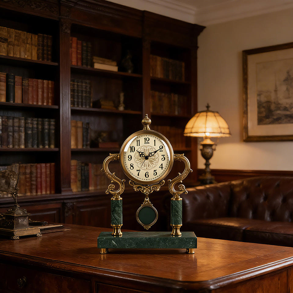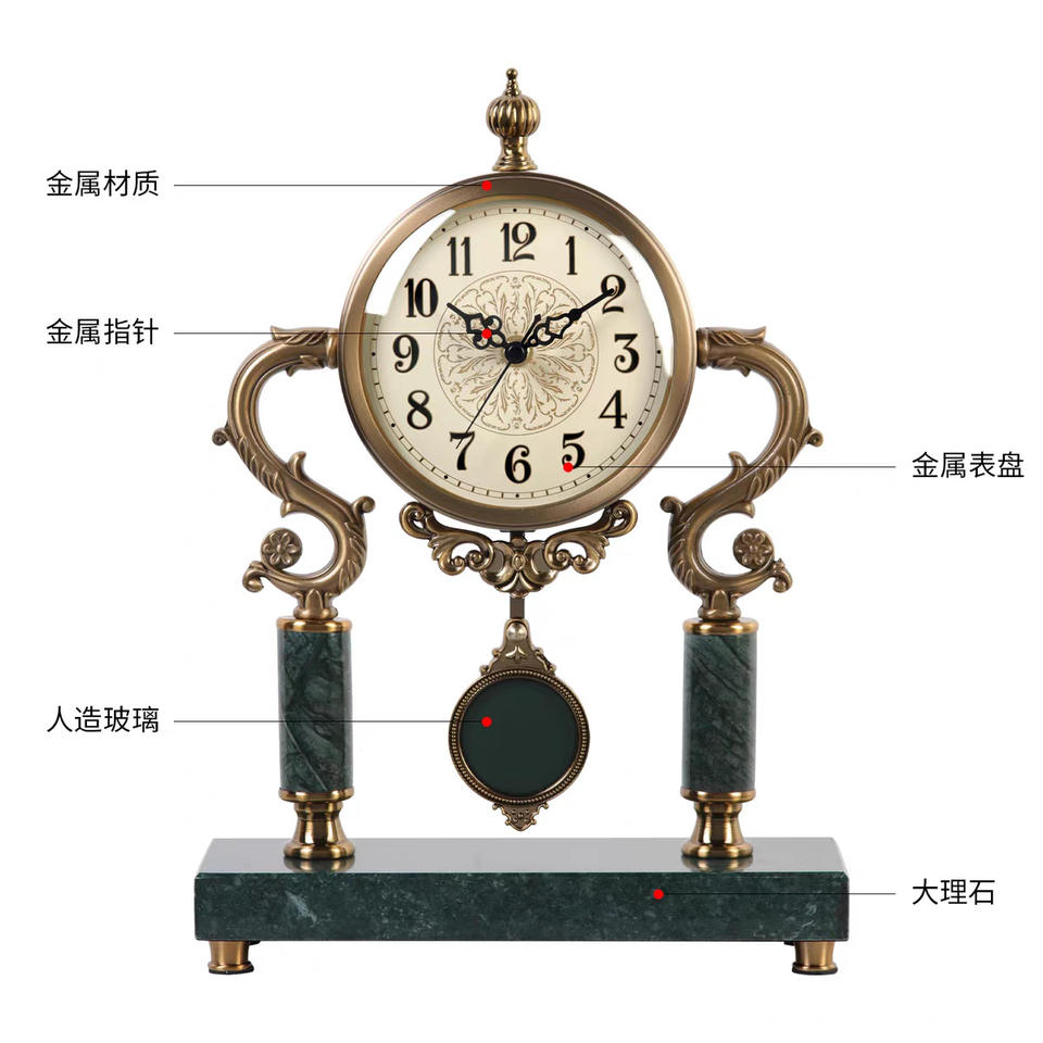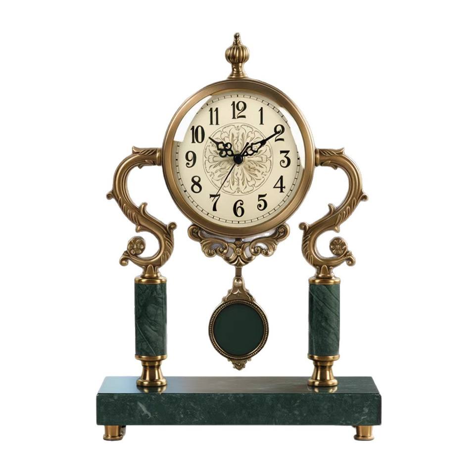 European Retro Table Clock Marble Base Circular Design Living Room Desktop Ornament American Luxury Style