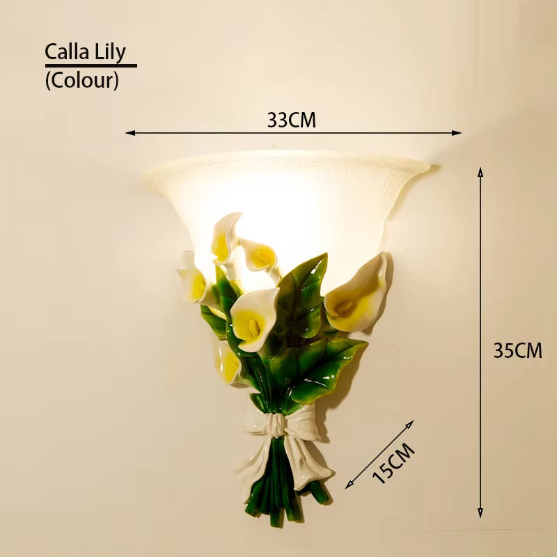 European Romantic Rose Wall Lamp Creative Flower Resin Bracket Light Bedroom Living Dining Corridor TV Background Wall
