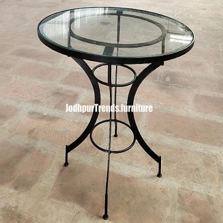European Simple Design Round Bistro Table & Chairs Black Metal Glass for Cafe & Restaurant Use