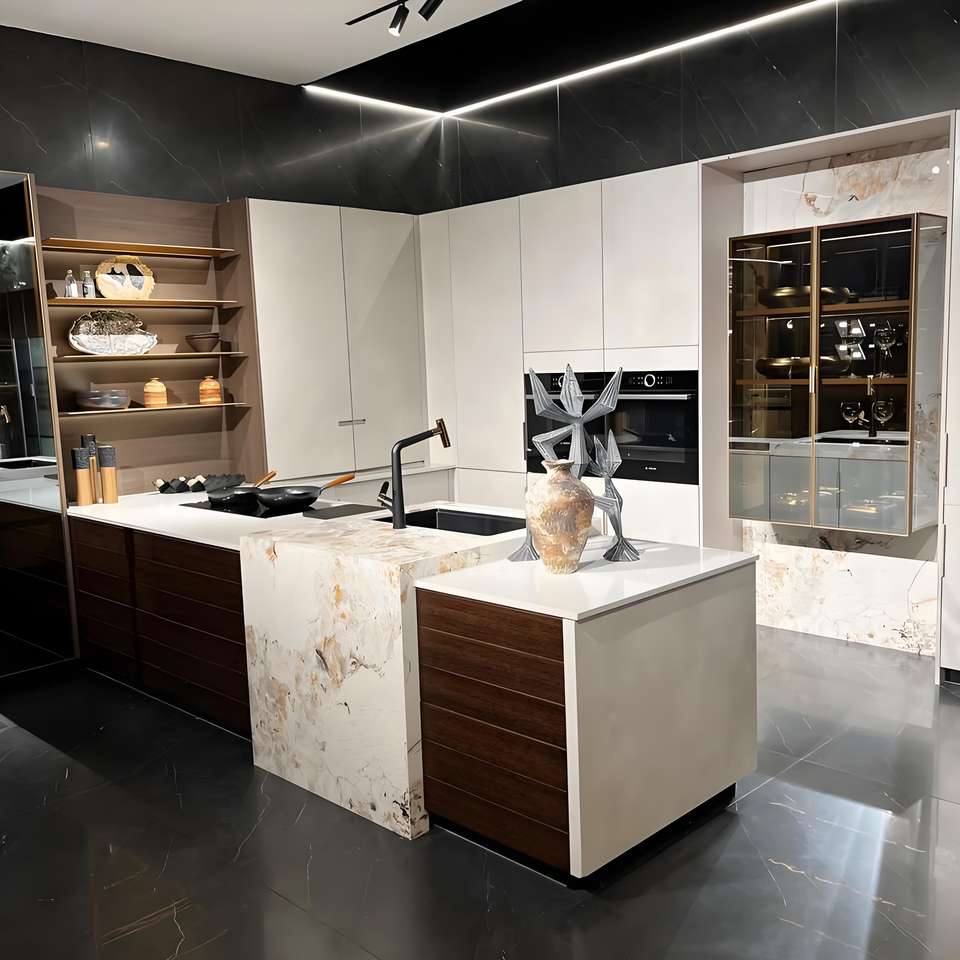 European Smart Modular Kitchen Island Table Marble Wood Finish Prefabricated Mdf Storage Sink Customizable Mdf Kitchen Cupboards