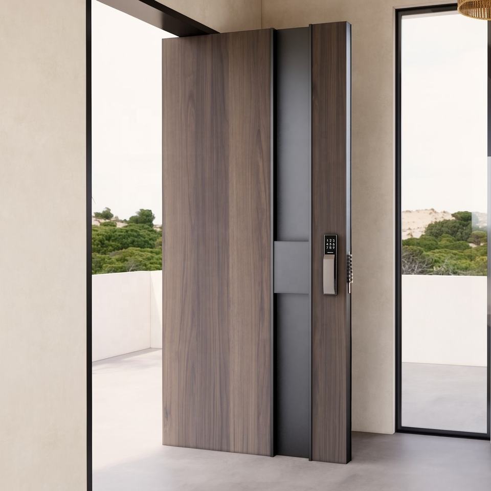 European Standard Entry Pivot Solid Wood Doors for Villa Apartment & Living Room Exterior Modern Anti-Theft Walnut Doors