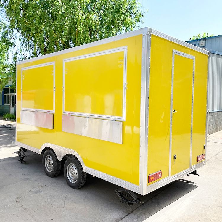 European Standard Fully Equipped Restaurant Yellow Food Truck Food Carts Trailers