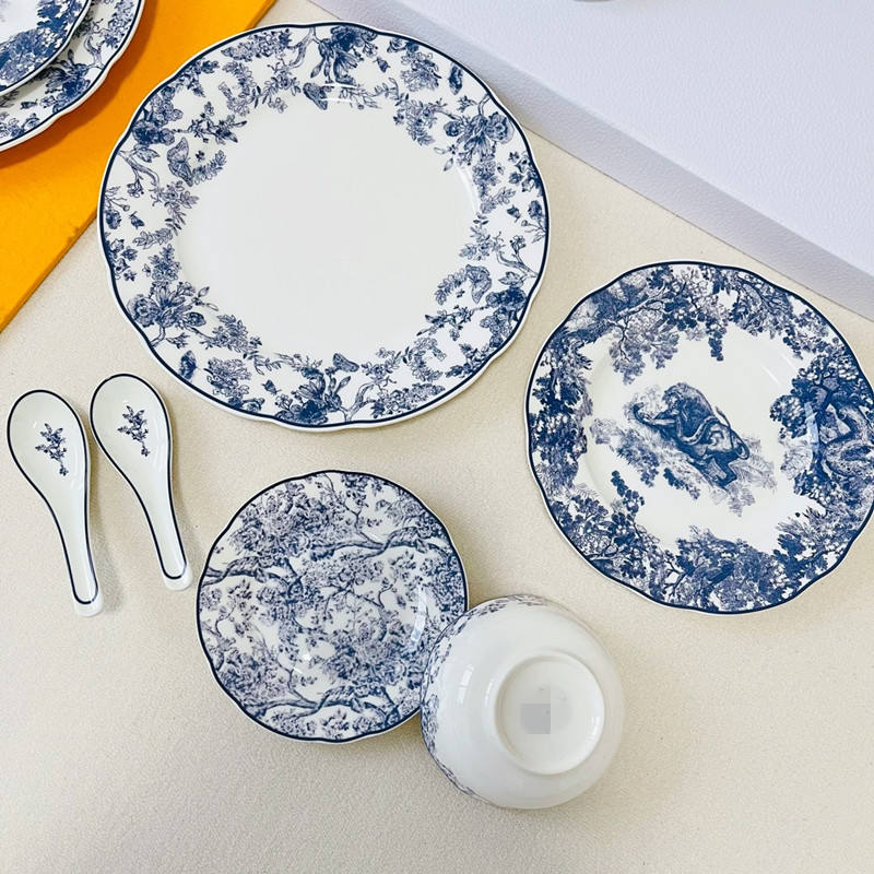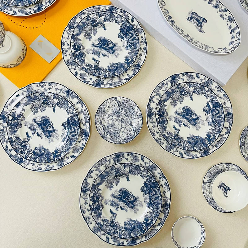 European Style 41-Piece Luxury Bone China Ceramic Dinnerware Set with Custom Logo Round Shape for Business Gifts