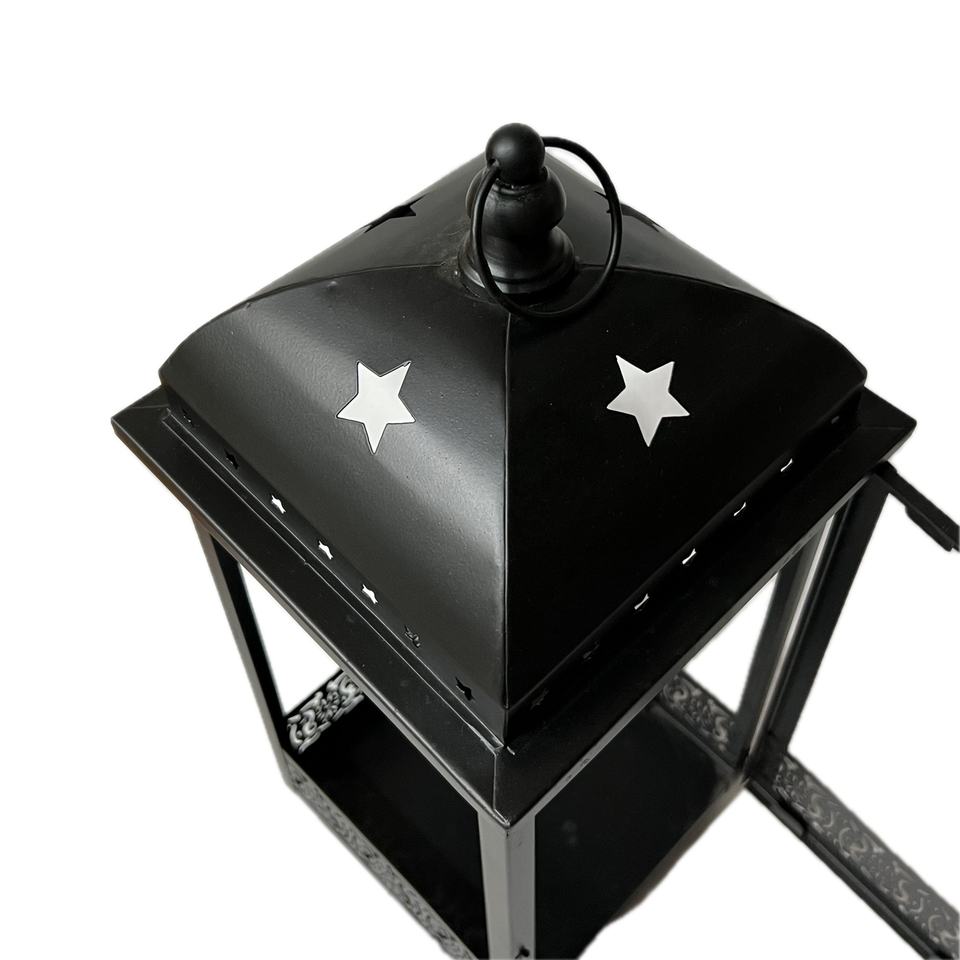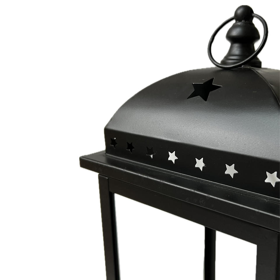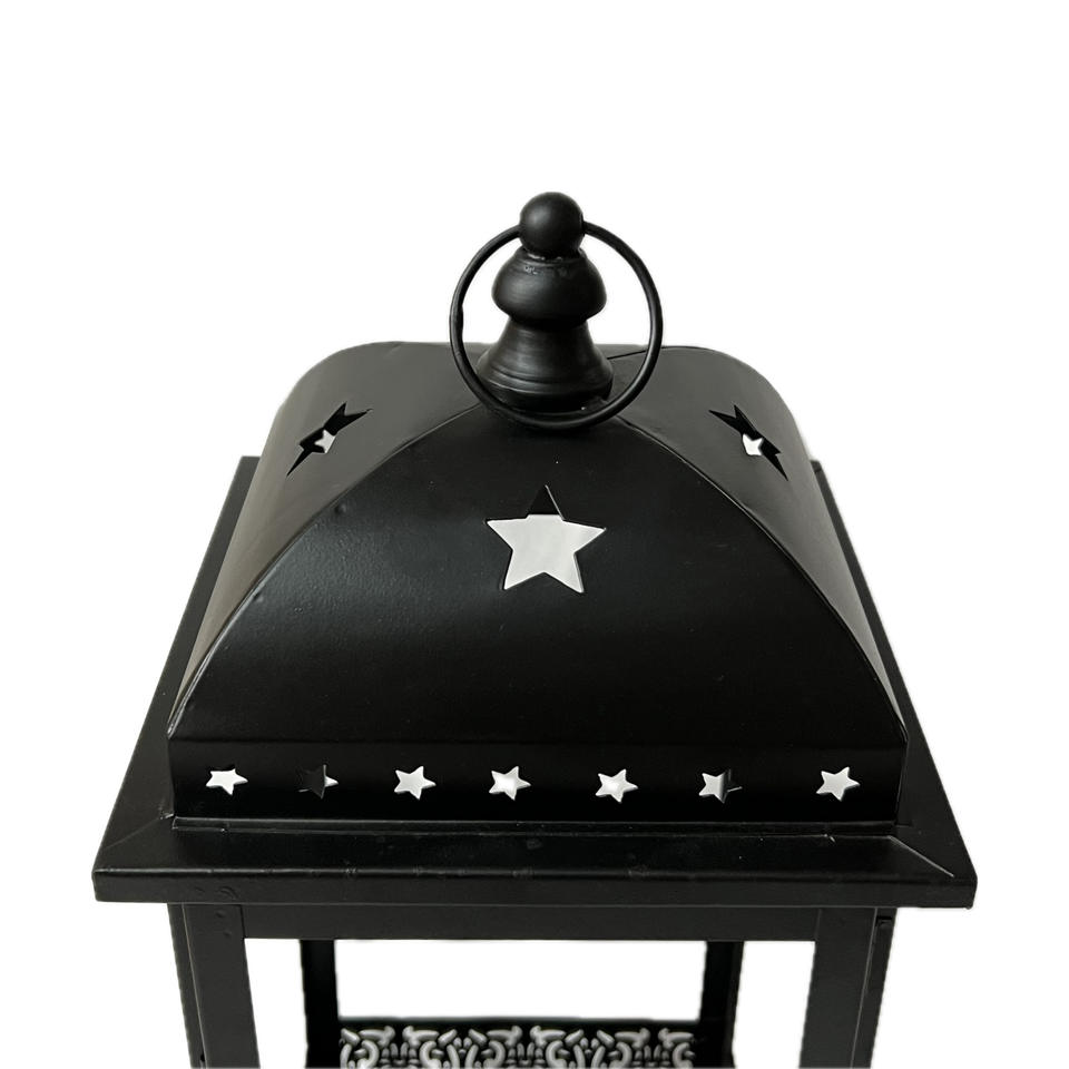 European Style Black Wood Candle Holder with Silver Finish Star Cutout Popular Home Decor Lantern for Christmas & Weddings