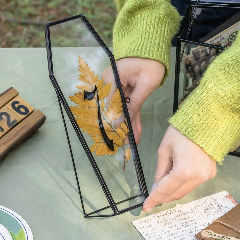 European Double Glass Photo Frame Nordic Modern Art Design Coffin Shape Black Rim Pressed Flower Custom Gold Metal Decorative