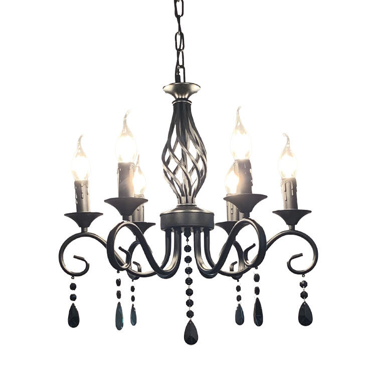 European Style Black Steel Iron Art Candle Chandelier 6/8 Head Pendant Lamp for Living Room Decor Rectangle Industrial Study
