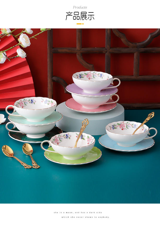 Dimensions (height, diameter):Cup: 10.5cm; Cup handle: 4cm; Mouth diameter: 13.5; Plate: 14cm