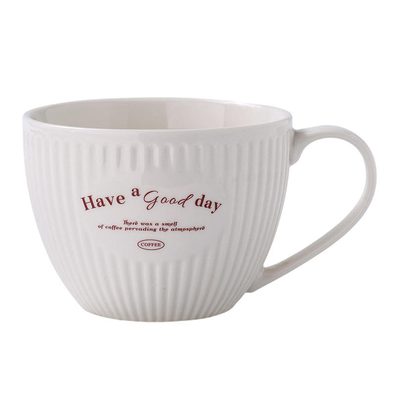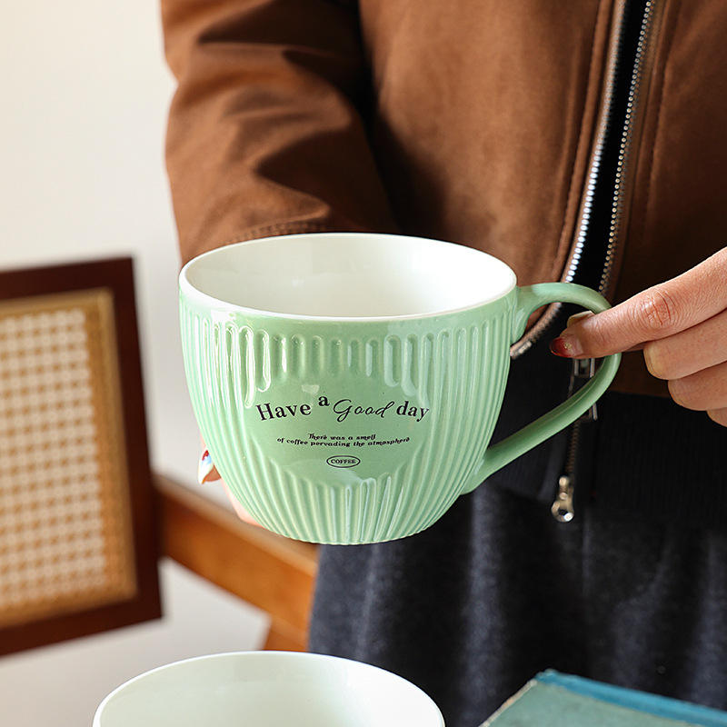 European Style Ceramic Mug Large Capacity Letter Print White Pink Yellow Green Coffee Tea Cup Gift For General Use