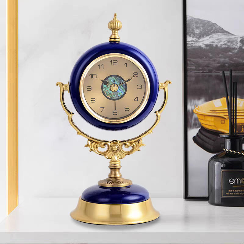 European Style Desktop Clock Blue Circular Quartz Table Clock Living Room Decor Silent Ornament