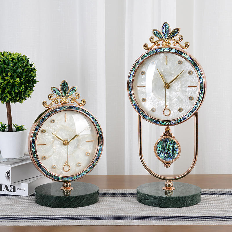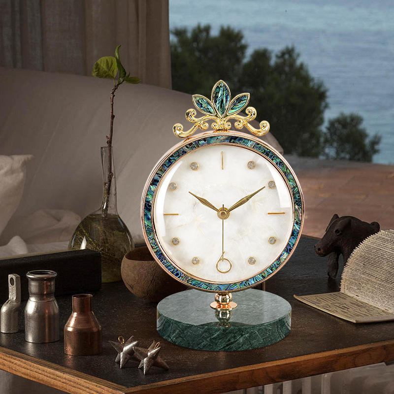 European Style Desktop Clock Marble Base Round Quartz Table Clock Home Decoration Ornament