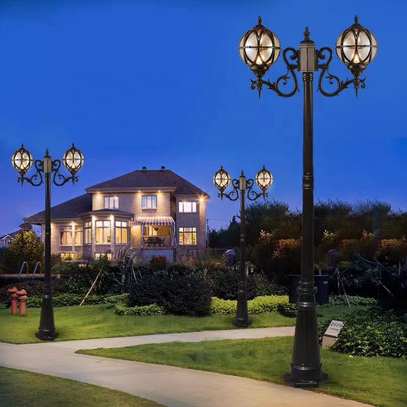 European Style Dual-Head LED Aluminum Antique Street Light 2/2.3/2.8m Outdoor Waterproof AC Powered Light Sensor IP65