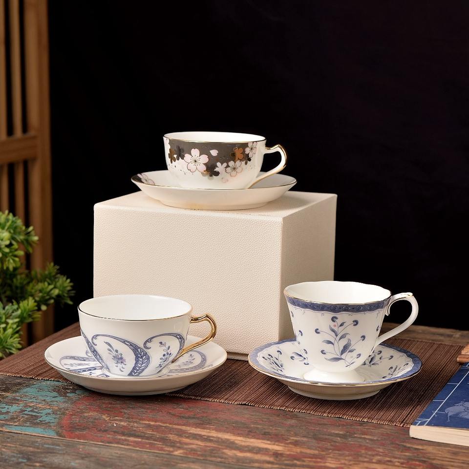 European Style Flower Printed Porcelain Espresso Cups British Tea Cup Set Vintage Ceramic Coffee Cup and Saucer Set