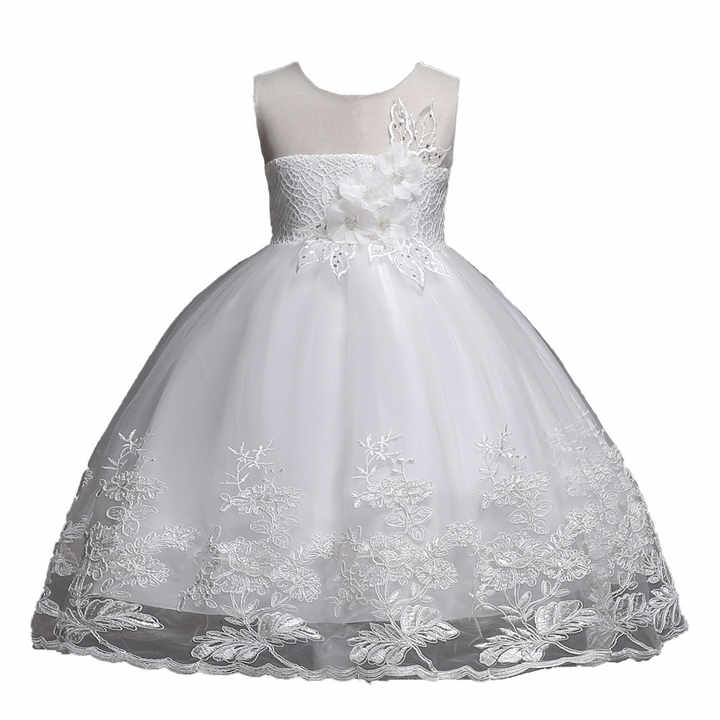 European Style Girls Party Birthday Dress Kid White Dresses for Weddings Summer Girls Clothing for 6 Years Old
