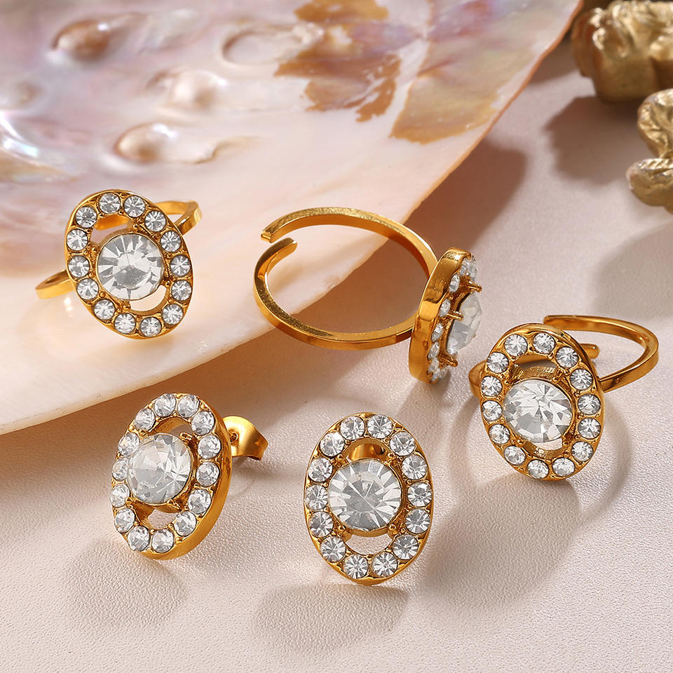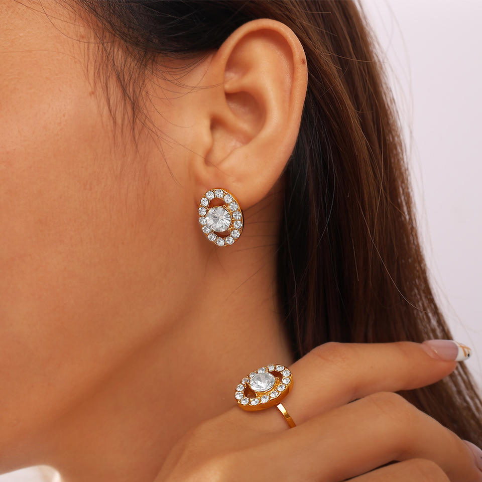 European Style Gold Earrings And Rings Set With Zircon Pave Setting For Wedding Women's Jewelry