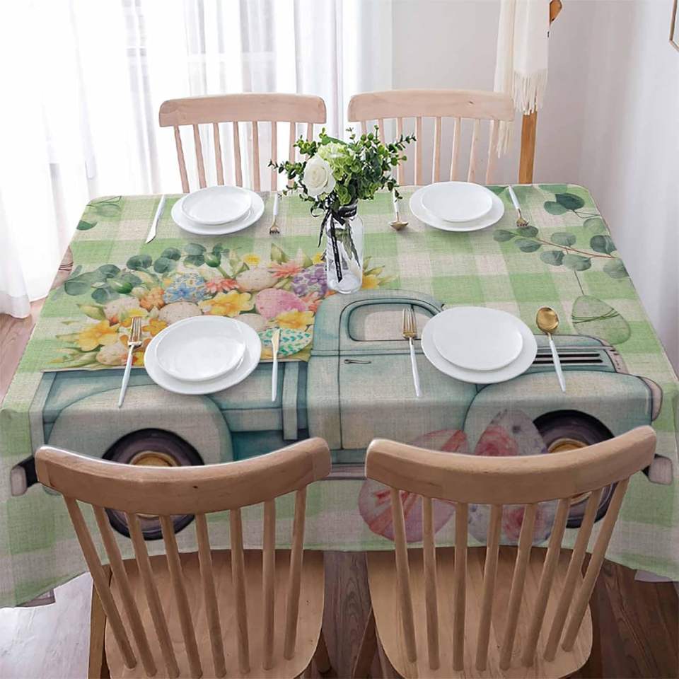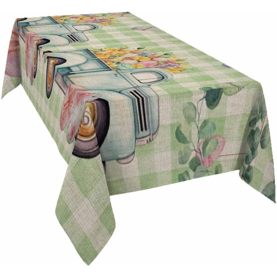 European Style Green Polyester Fabric Square Easter Truck Tablecloth Wrinkle-Free and Wipeable for Home Decor or Hotel Use