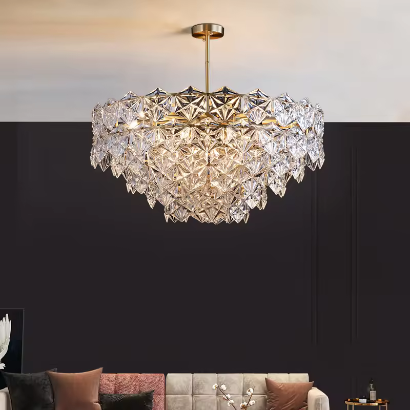 European Style K9 Crystal Chandelier Copper Finish Modern Nordic Design 220V Large Middle Size for Home Hotel Pendant Lights