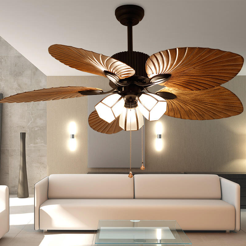 European Style Leaf Blade Living Room Restaurant Three Light Color Decorative AC Ceiling Fan with Remote Control