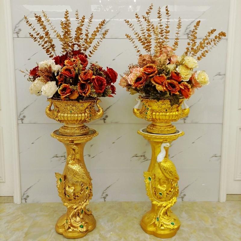 European Style Living Room Floor Large Vase Ornaments Gold Plated Home Decorations TV Cabinet Dried Flower Insert Flower