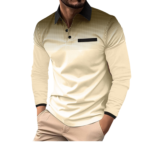 European-Style Men's Summer Sports for T-Shirt Woven Fabric Breathable Printed Polka Dot Long Sleeve Polyester/Cotton Button-Up
