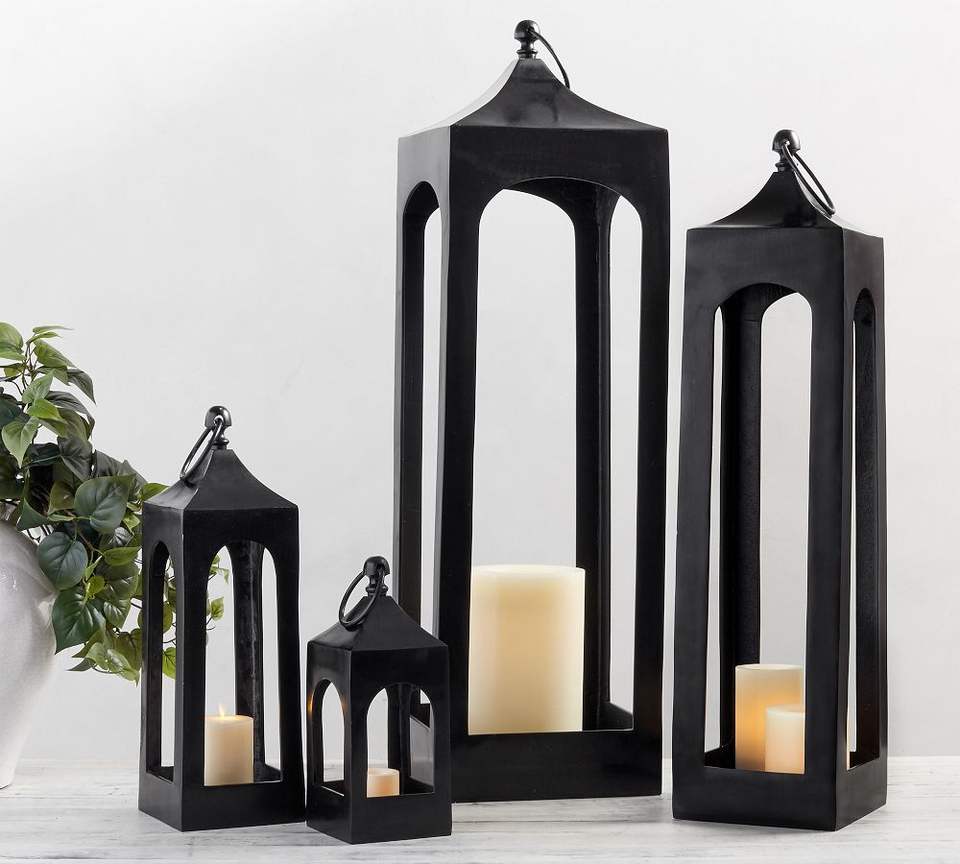 European Style Metal Candle Holder Lantern Black Powder Coating Aluminum Floor Lantern for Wedding & Party Decoration