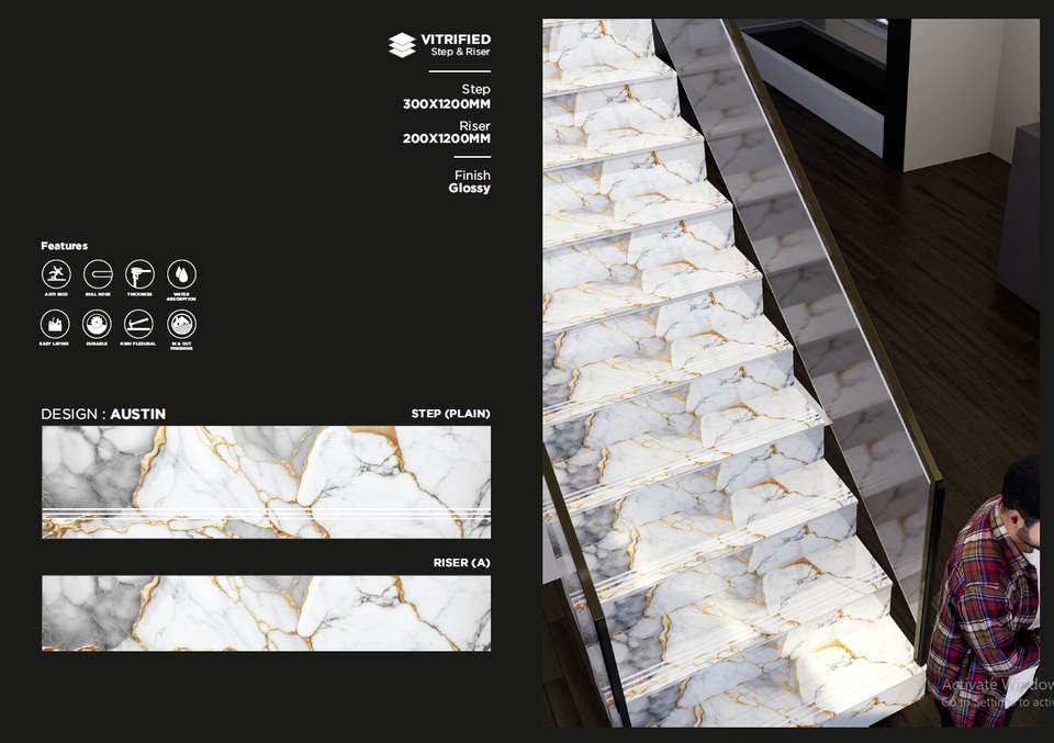 European Style Modern Design Floating Interior Stairs Non slip Tiles Solid Wood Step with Vitrified Tiles Staircase