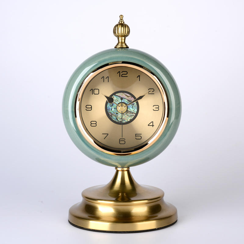 European Style Quartz Table Clock Circular Green Decorative Home Desktop Clock Ornamental Timepiece