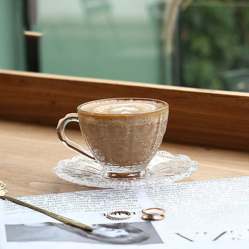 European-Style Retro Creative Household Glass Coffee Cup with Saucer European-Style Tea Cup Set with Colorful Design