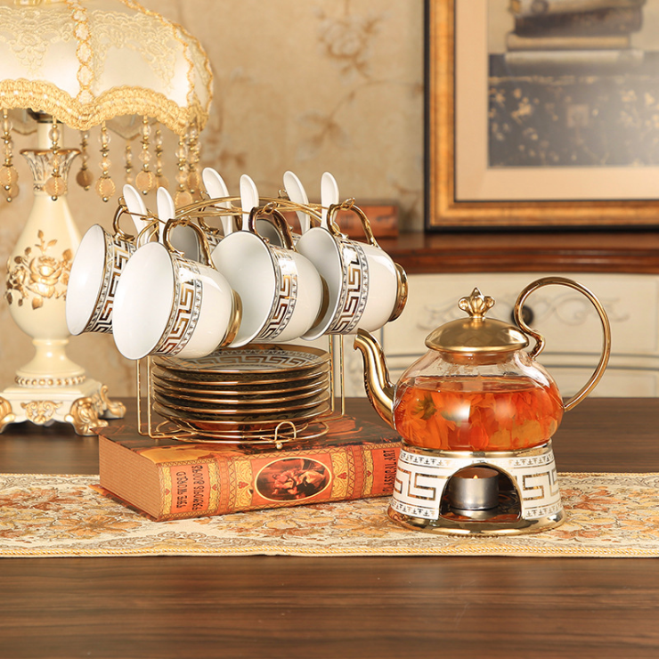 European Style Simple Flower and Fruit Tea Set Candle Heating Glass Ceramic Boiled Fruit Flower Tea Set Afternoon Tea Set