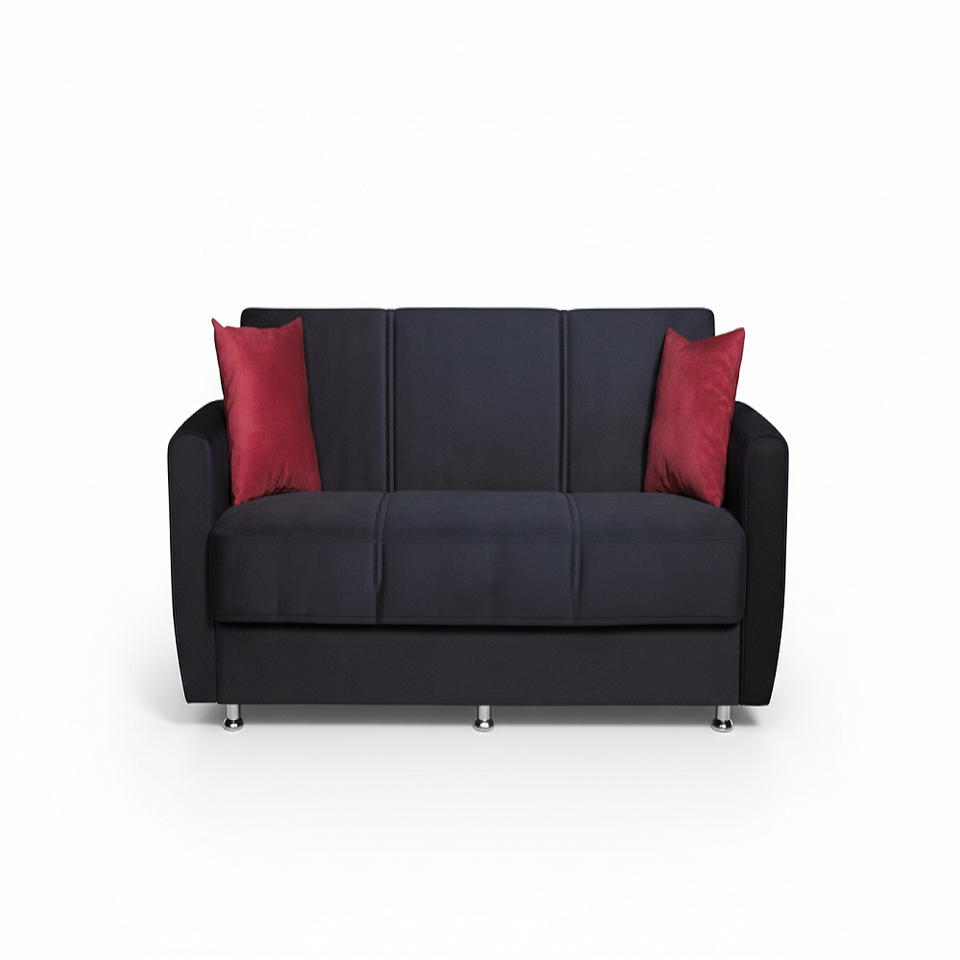 European Style Sofa Bed Fabric Upholstery Extendable Portable Convertible Solid Wood Frame Storage Click Clack Mechanism