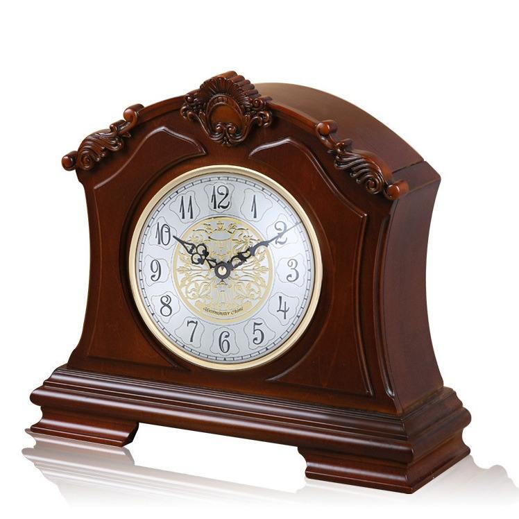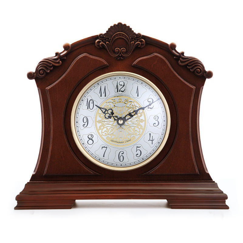 European Style Solid Wood Table Clock Dome Shape Hourly Chime Retro Wooden Clock 1033A