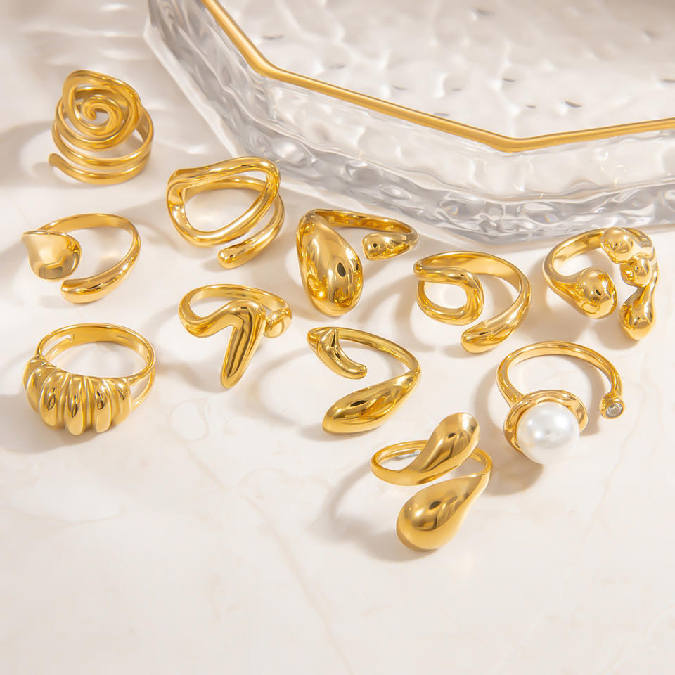 European Style Stainless Steel Rings For Women 18k Gold Plated Irregular Geometric Design Party Jewelry Titanium Steel Fashion