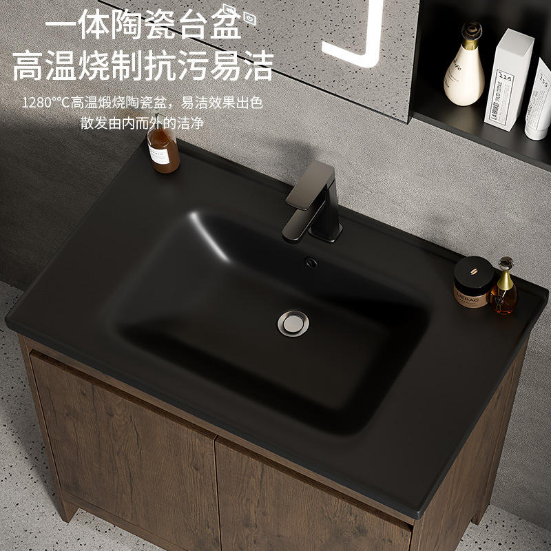 European Style Walnut Aluminum Floor-Standing Bathroom Vanity Unit One-piece Ceramic Washbasin Waterproof Design for Hotels