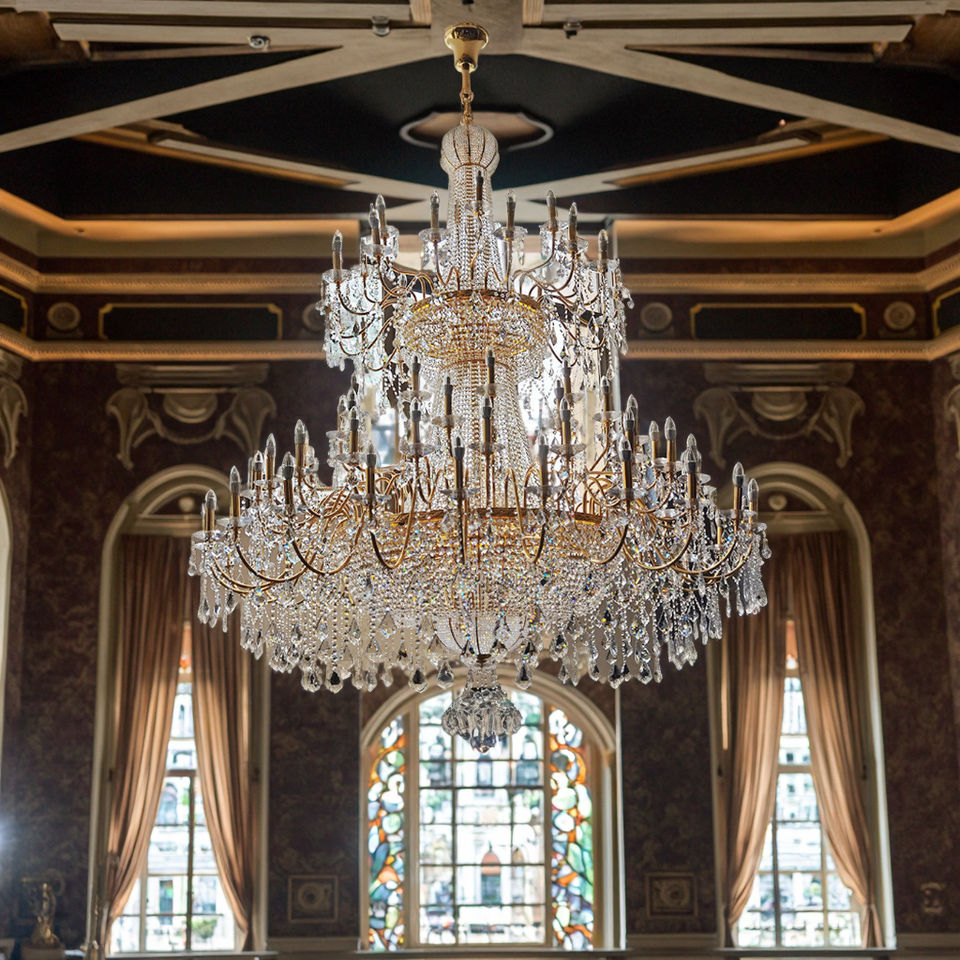 European Vintage Long Living Room Big Led Luxury Hotel K9 Crystal Gold Antique Brass Chandelier Lighting