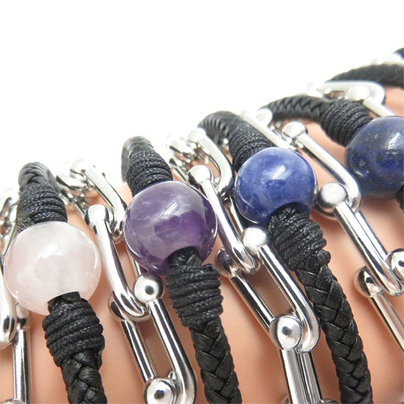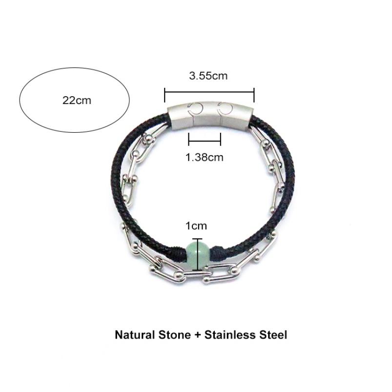 European Vintage Women's Stainless Steel Chain Bracelet Multi-Layered Leather Accessory Natural Stone Gold Plated Magnetic Band