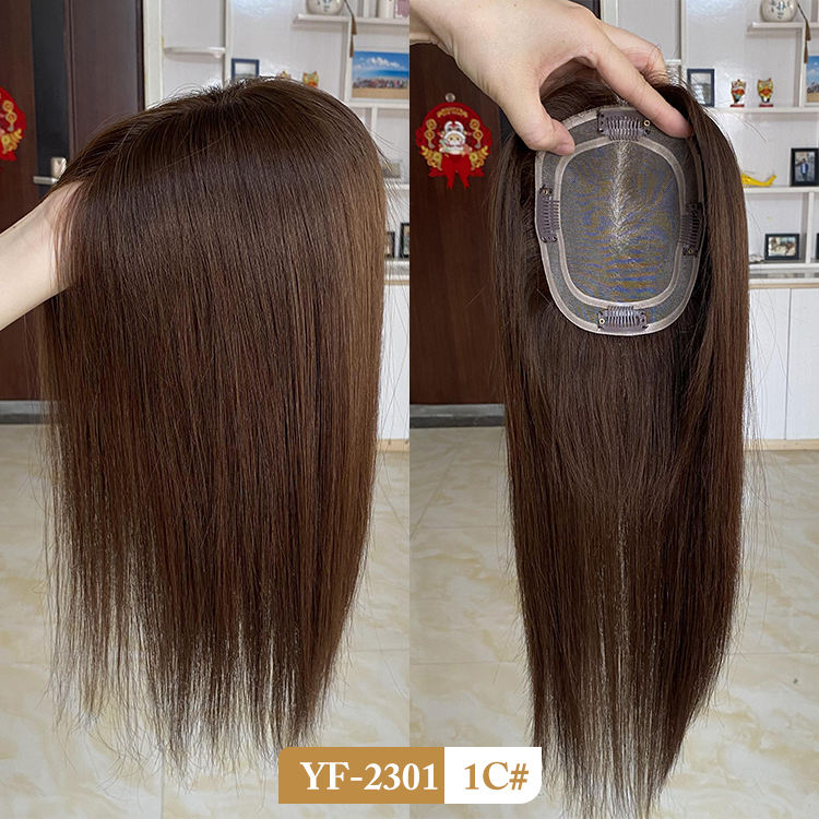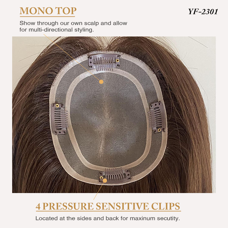 European Virgin Human Hair Cuticle Aligned Topper Brown Clip in Hair Piece Mono Base Topper Russian Hair for Women Ready to Ship