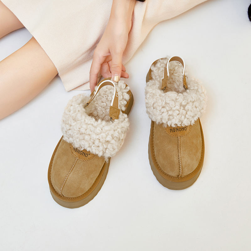 European Women's One-Piece Snow Boots Plushy Shoes slippers Wholesale Womens Fur SlipWomen's Low Slipperspers