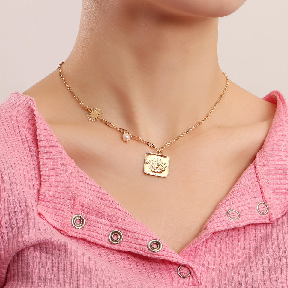 European and American Cross-Border Jewelr Simple Devil's Ee Pendant for Women Ins Metal Stle Necklace Wholesale from Yiwu
