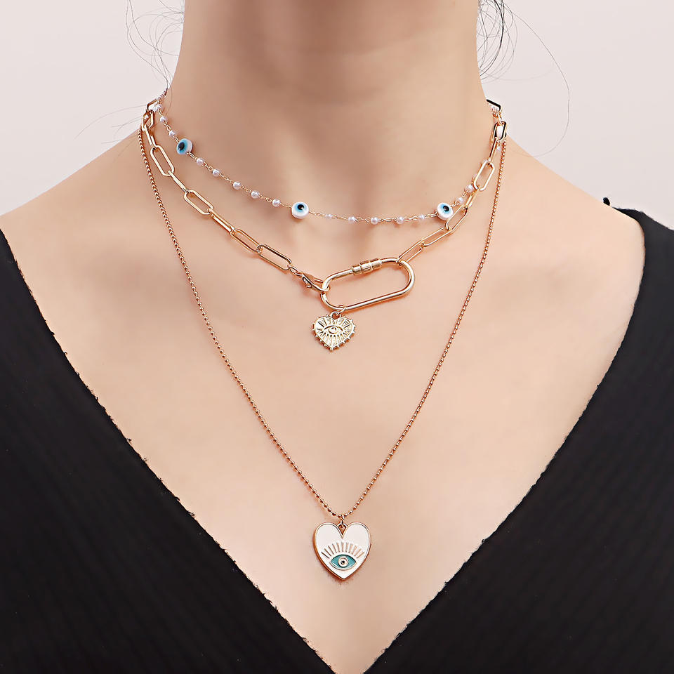 European and American Cross-Border Jewelry Personality Fashion Devil's Multi-Layer for Women Trendy Hip-Hop Eye Choker Necklace
