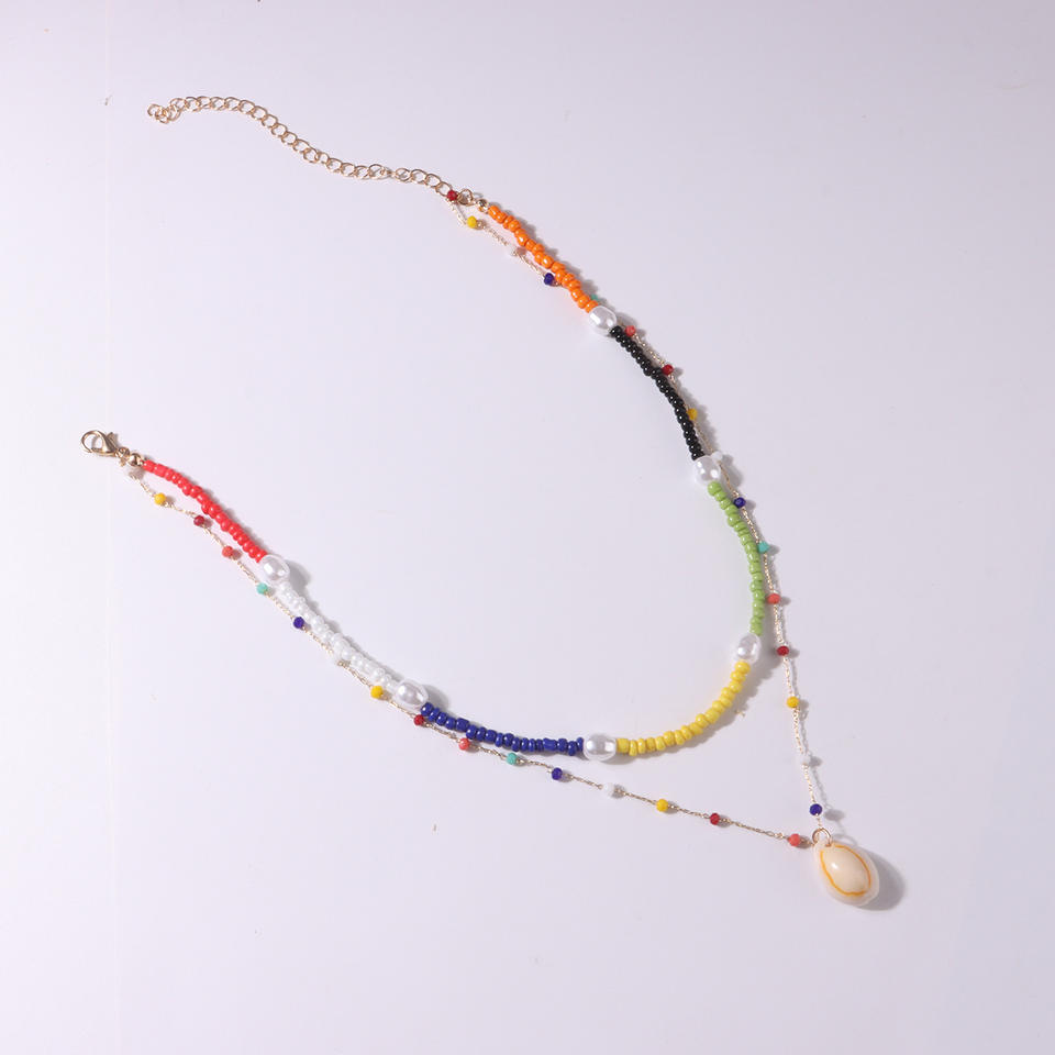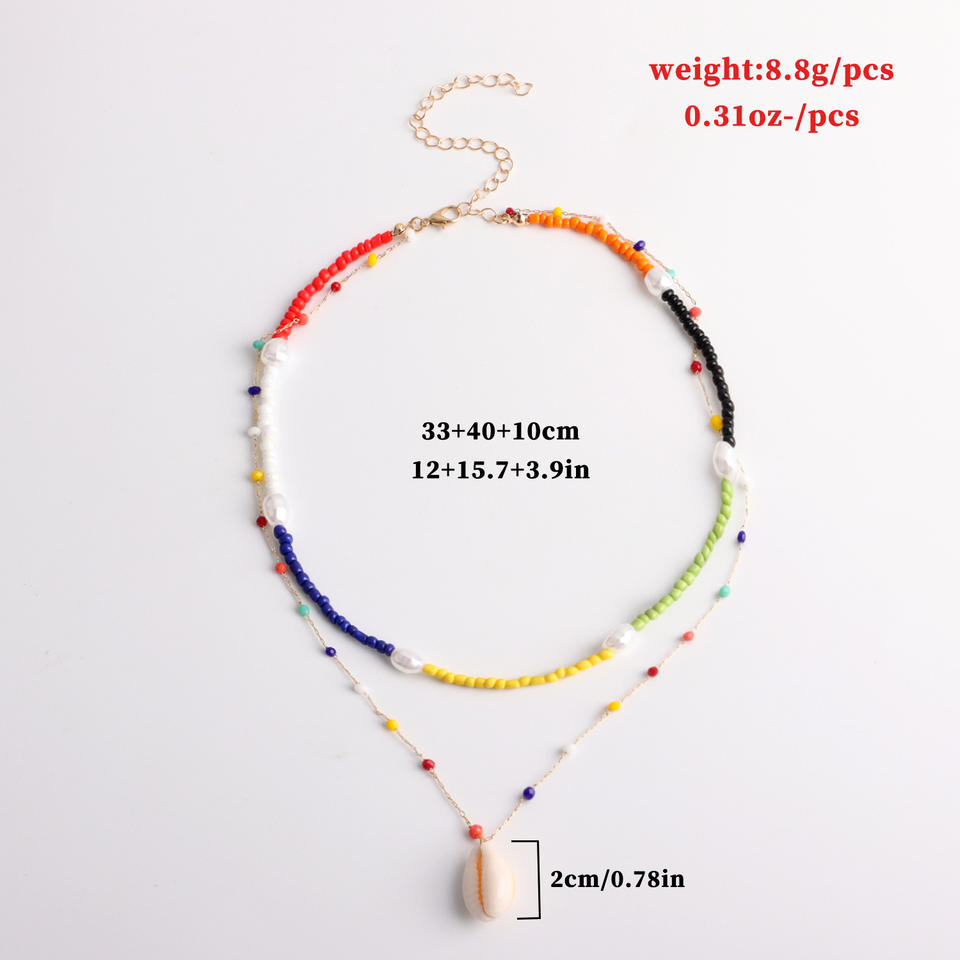 European and American Cross-Border Jewelry Elegant Simple Colorful Shell Pendant for Women Trendy Punk Rice Bead Pearl Necklace