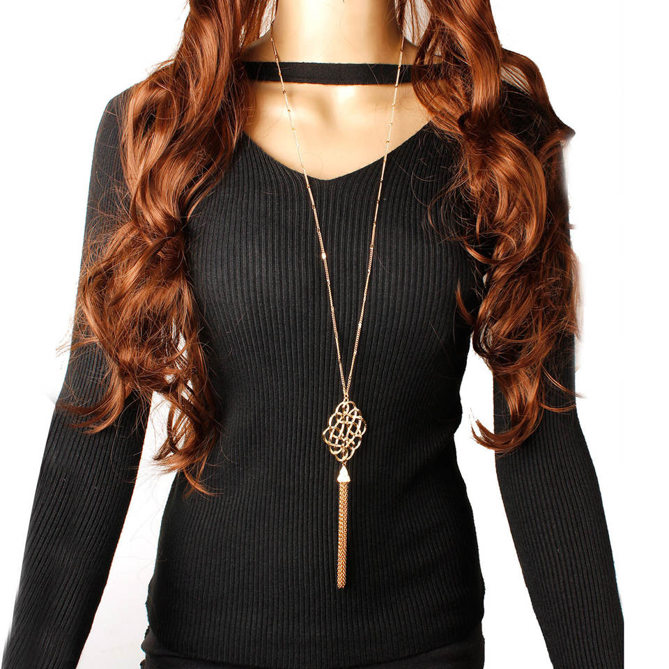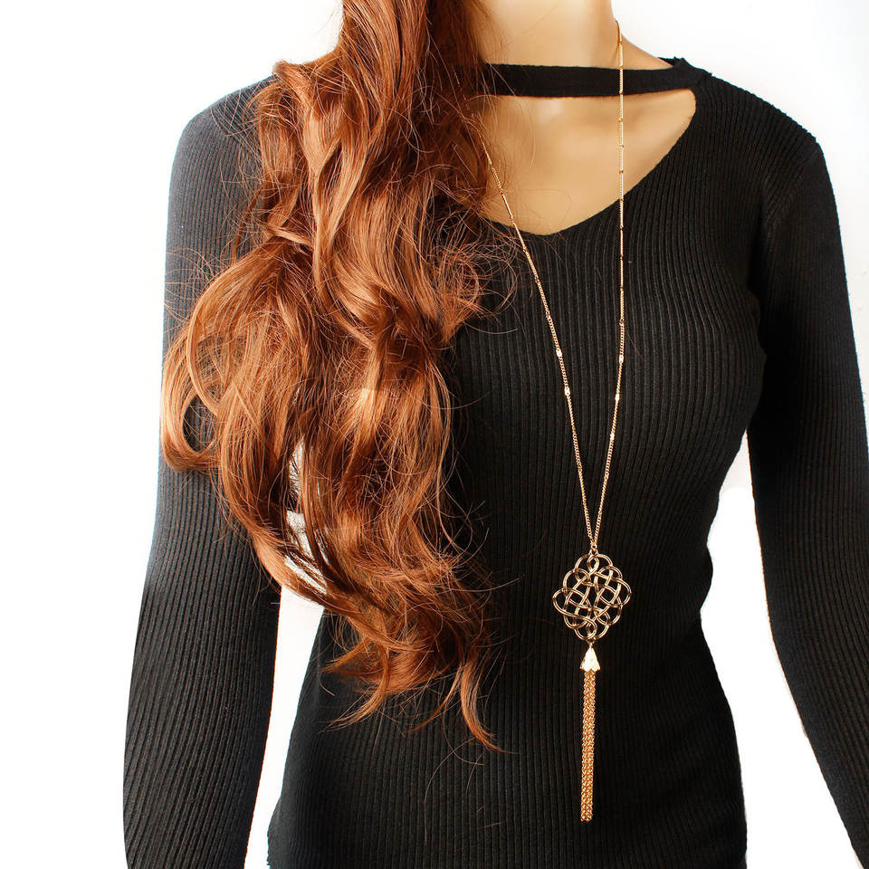 European and American Cross-Border Jewelry Women's Long Celtic Knot Pendant Necklace Bohemian Fashion Tassel Sweater Chain