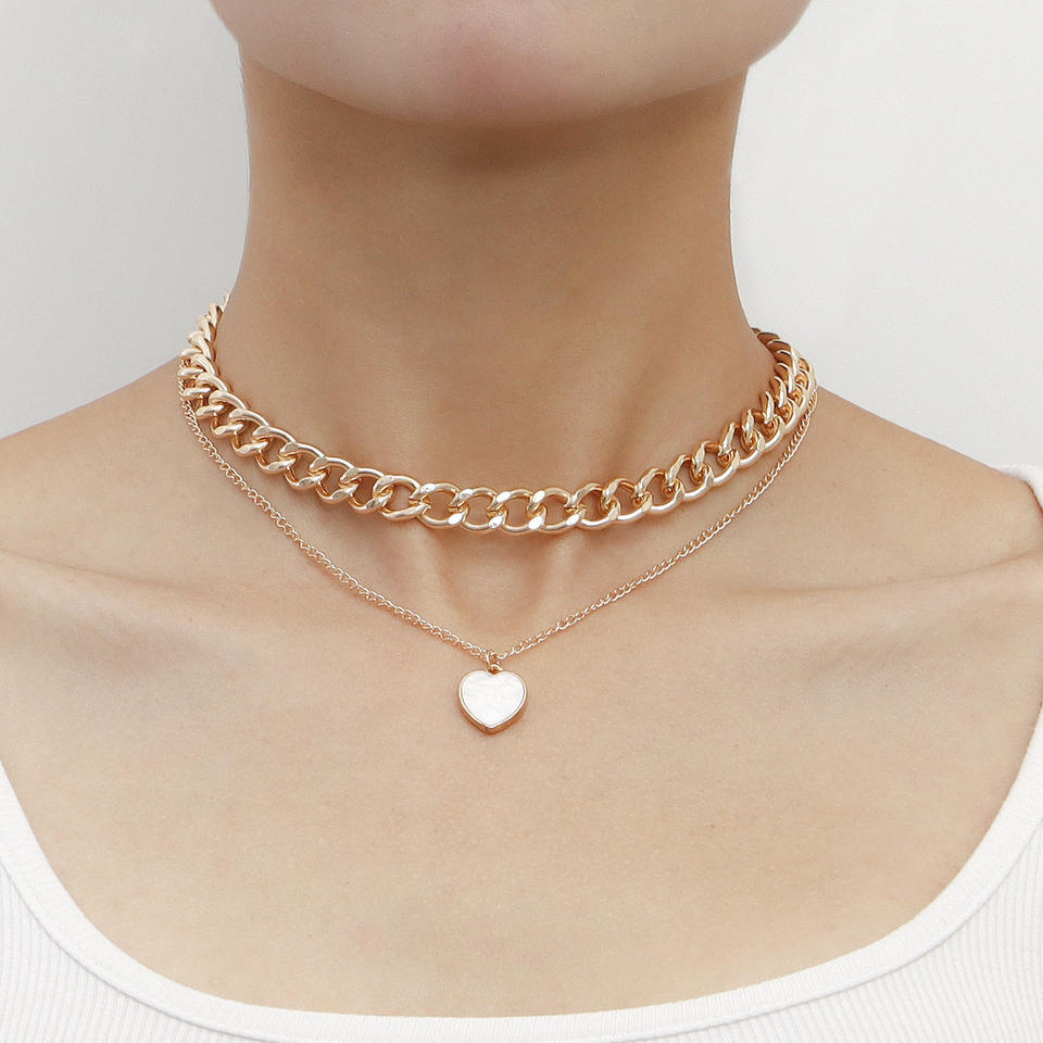 European and American Cross-Border Jewelry Punk Double-Layer Heart Mother-of-Pearl Pendant Necklace for Women Light Choker