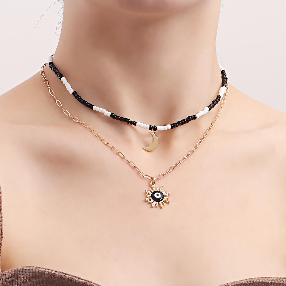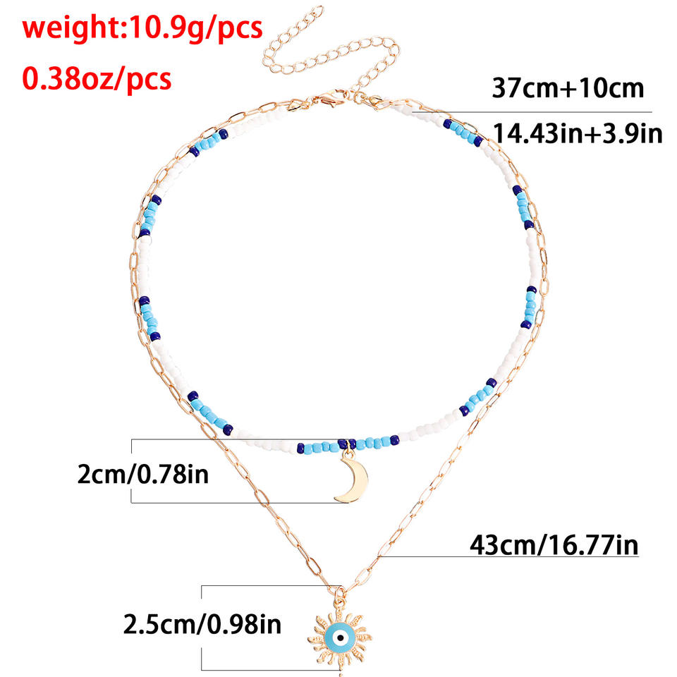 European and American Cross-Border Jewelry Bohemian Mixed Color Bead Crescent Moon Evil Eye Pendant Necklace for Women In Stock