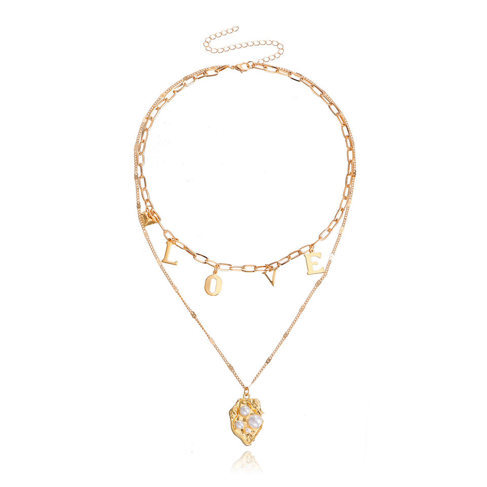 European and American Cross-Border Jewelry Simple Exaggerated LOVE Letter Layered Pearl Pendant Ins Metal Style Necklace