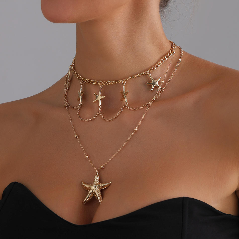 European and American Cross-Border Jewelry Ocean Style Casual Vacation Multi-Layer Starfish Necklace Vintage Sexy Versatile