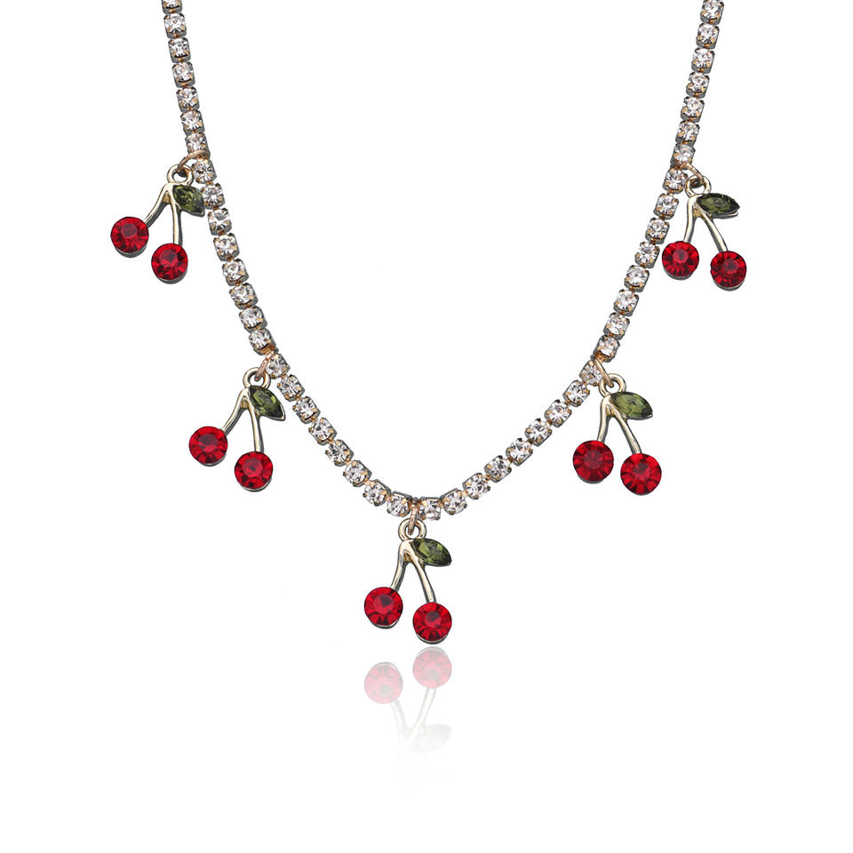 European and American Cross-Border Jewelry Forest Style Retro Red Cherry for Women Elegant Trendy Micro-Inlaid Full Dia
