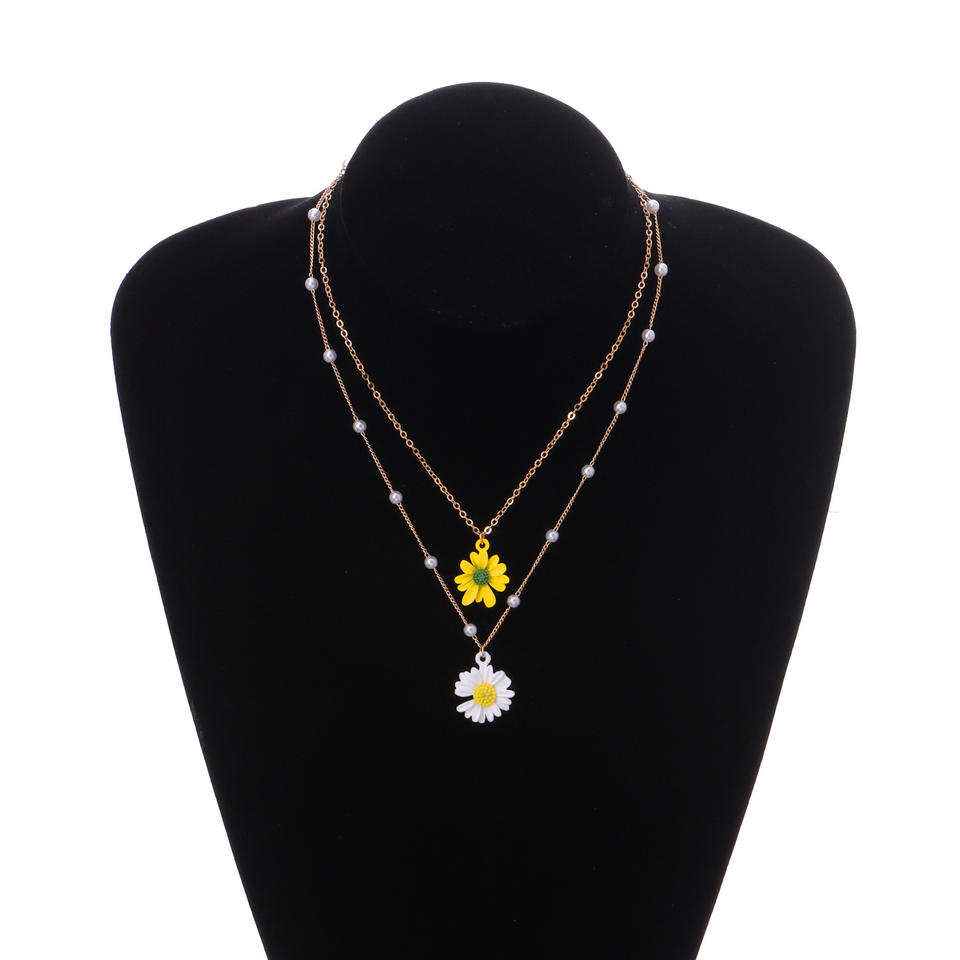 European and American Cross-Border Jewelry Hot-Selling Pearl Daisy Pendant for Women Hip-Hop Fashion Versatile Double-Layer